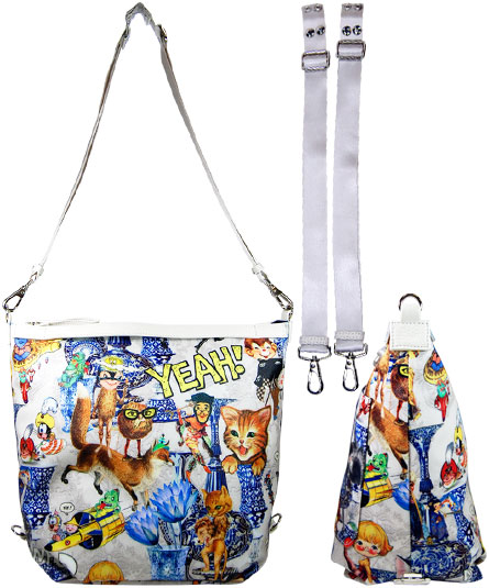 3WAY、提げ手として、また、手紐を付け替えて、ショルダーから、リュックになります。