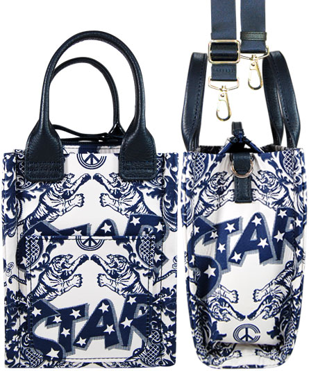 ダマスク織りのベース模様と"STAR"のロゴが大きく織り込まれたインパクトのあるコミカルなジャガード生地を使用したバッグシリーズ。