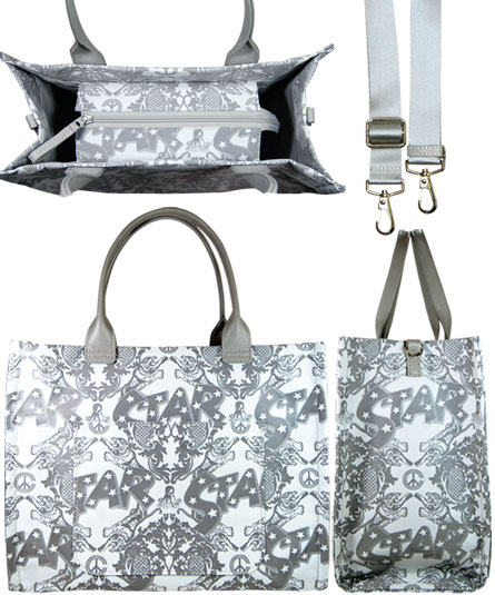 ダマスク織りのベース模様と"STAR"のロゴが大きく織り込まれたインパクトのあるコミカルなジャガード生地を使用したバッグシリーズ。