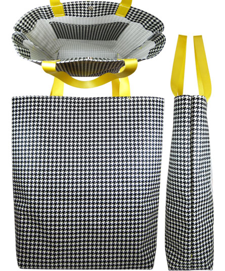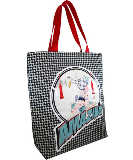市松模様のプリント生地に象のアップリケを施したショッピングトート。
