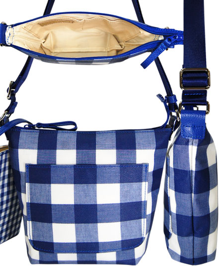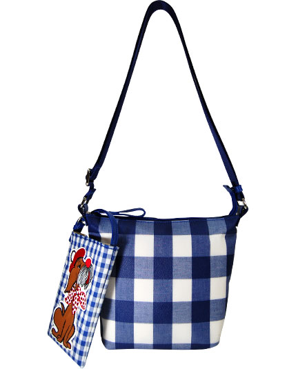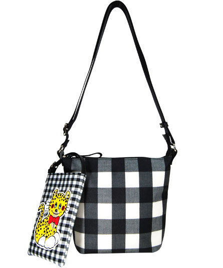 王道のギンガムチャック柄をバッグには、大きなチェックをポーチには、小さなチェックをコンビネーションさせたところがチャームポイントです。