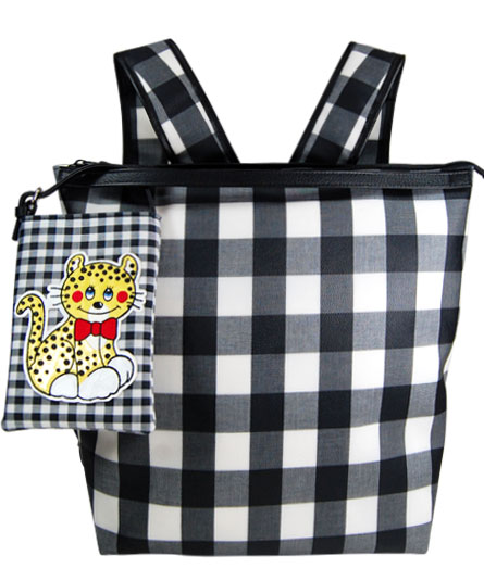 王道のギンガムチャック柄をバッグには、大きなチェックをポーチには、小さなチェックをコンビネーションさせたところがチャームポイントです。