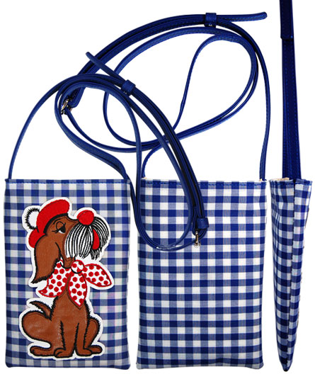 ②ブルー(犬の刺繍入り携帯ポーチ)
